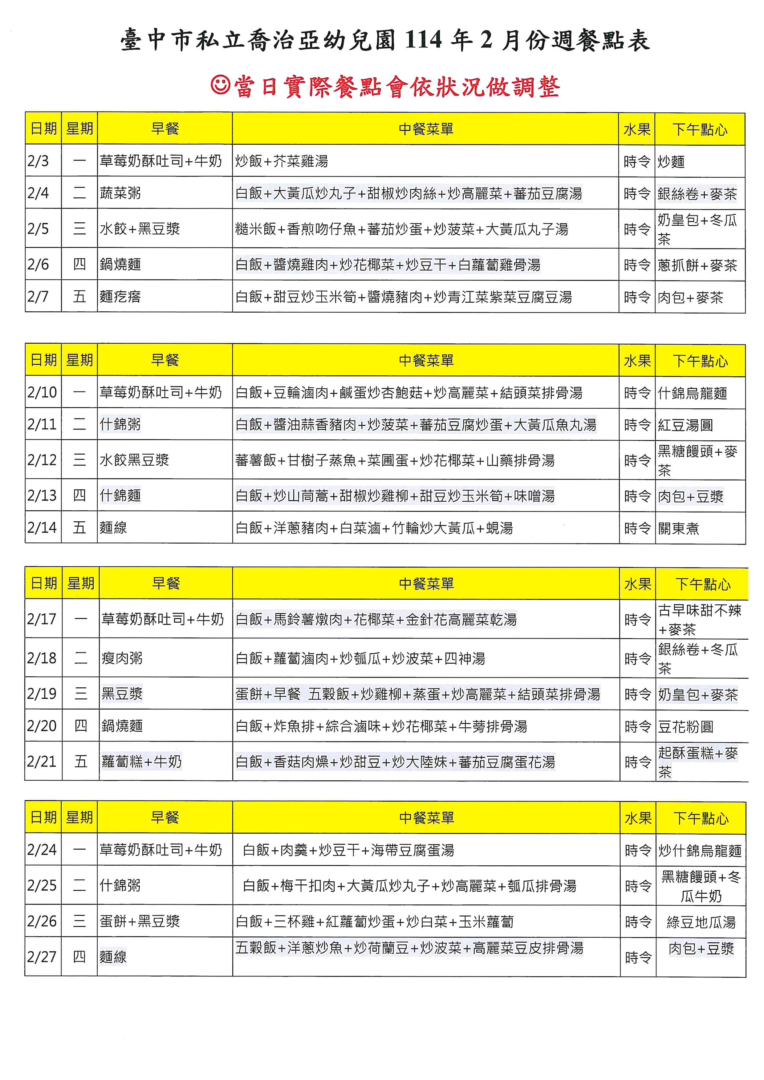 114年02月菜單