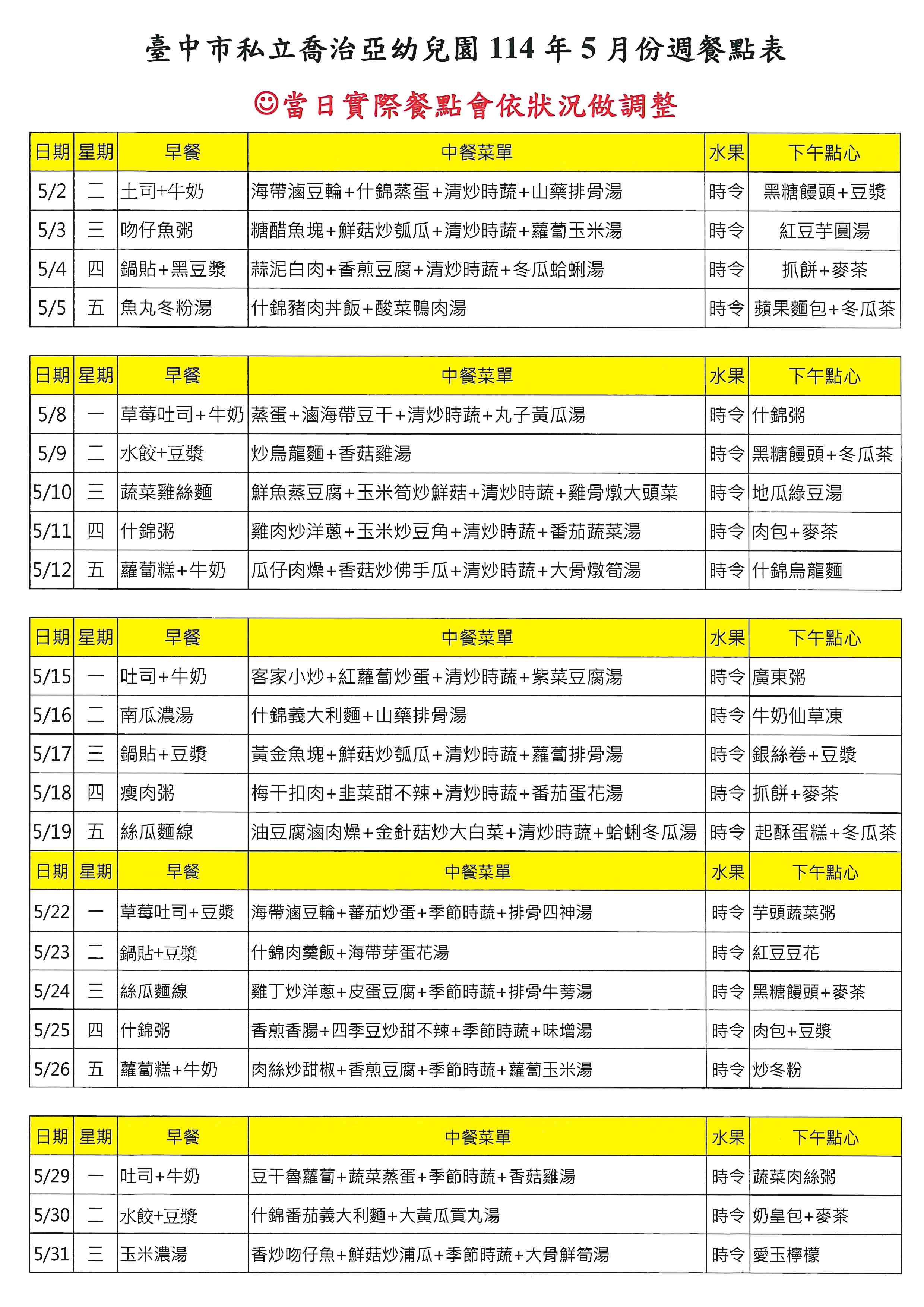 114年05月菜單