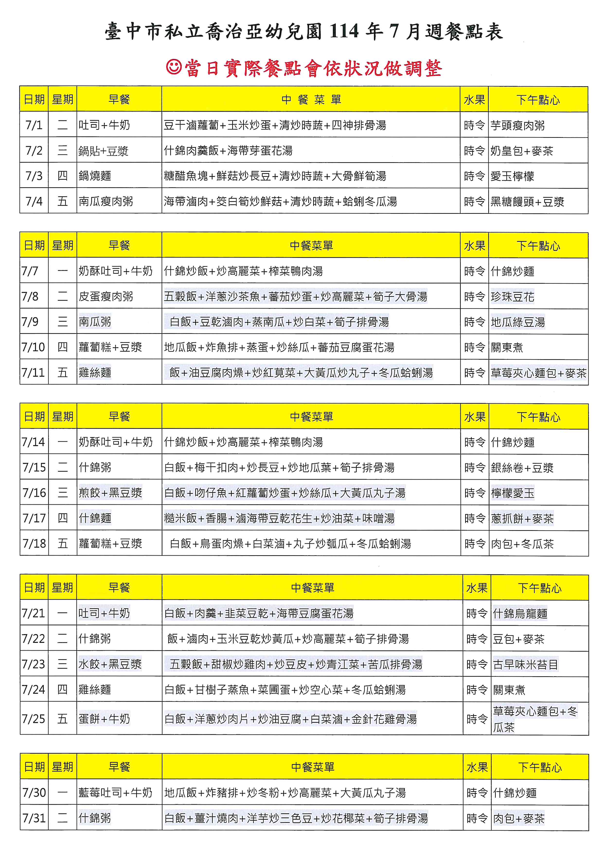 114年07月菜單