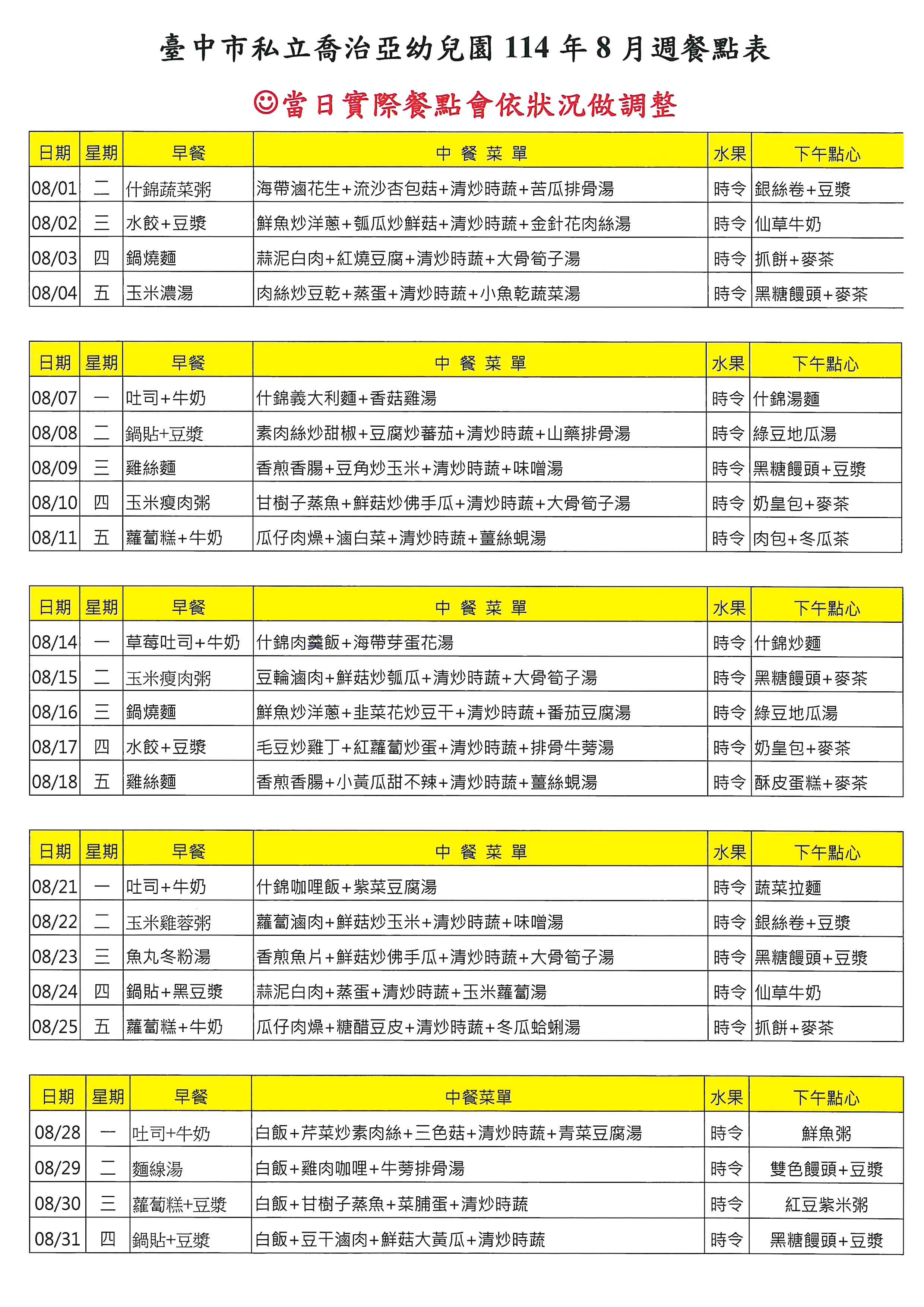 114年08月菜單