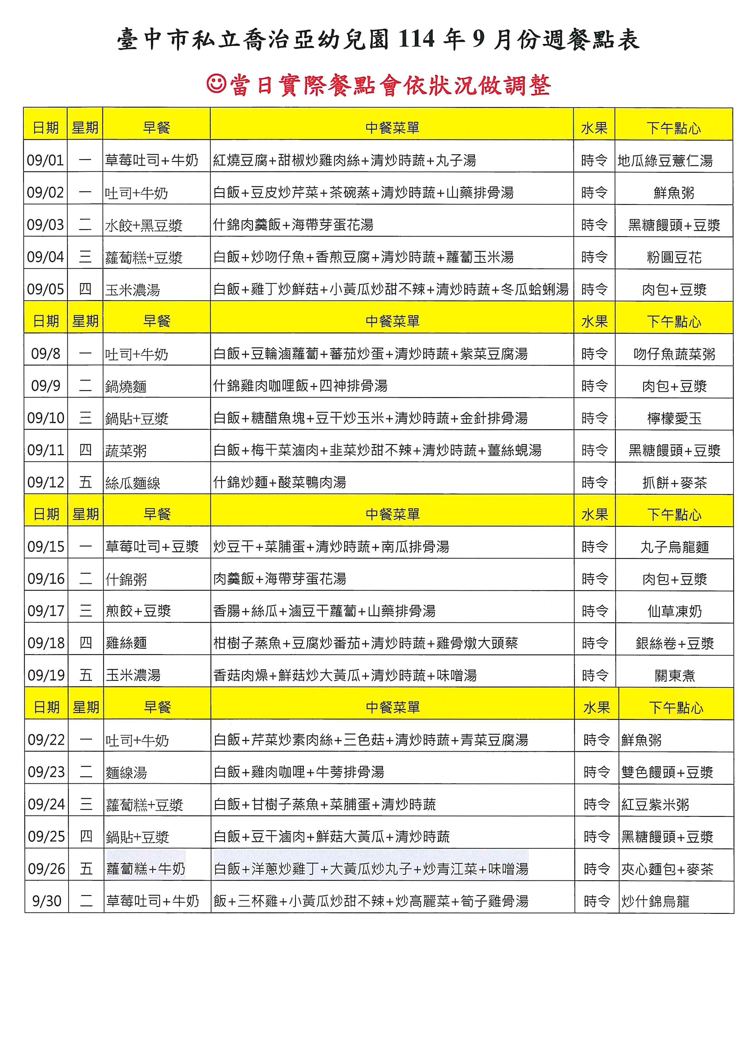 114年09月菜單