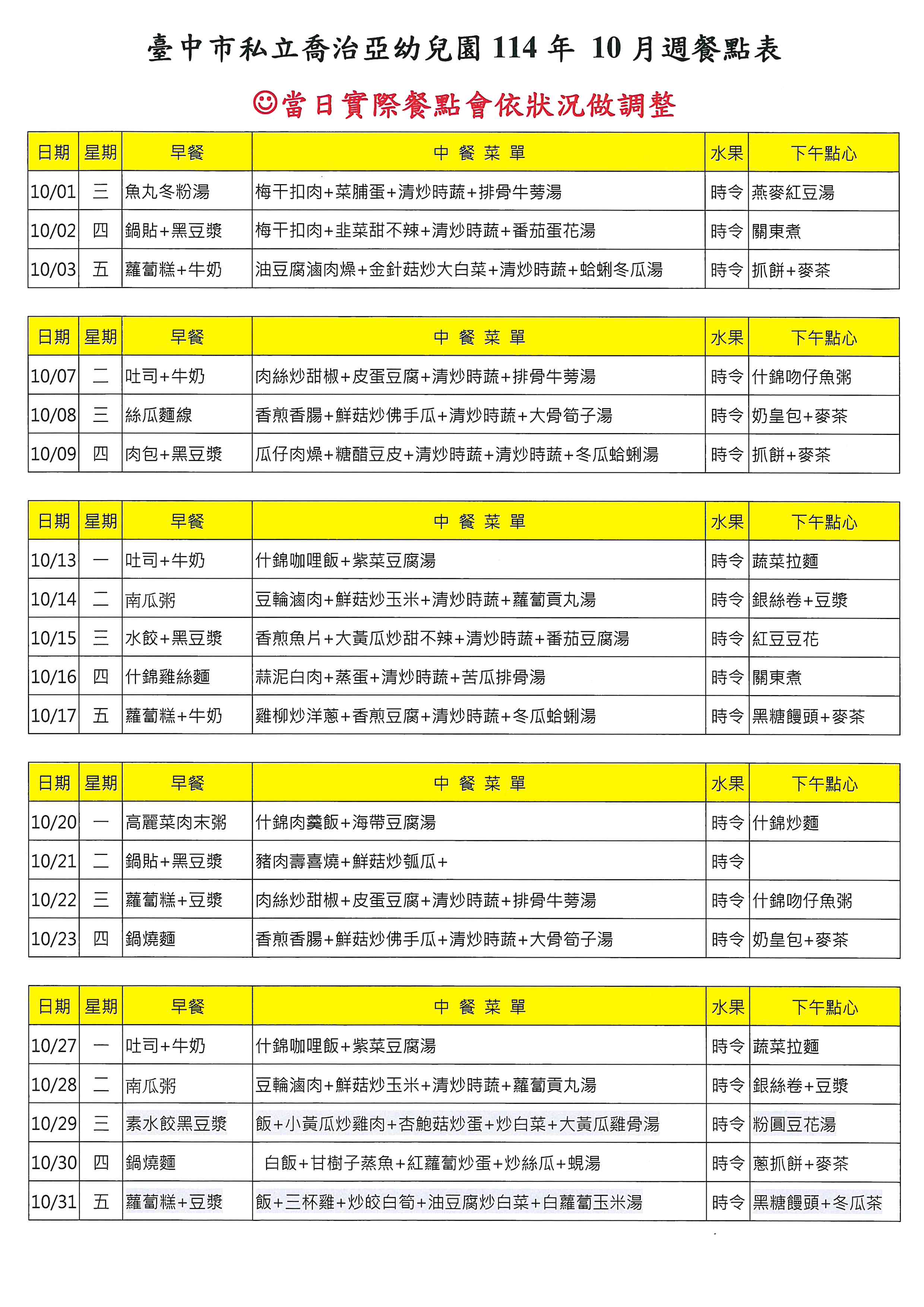 114年10月菜單