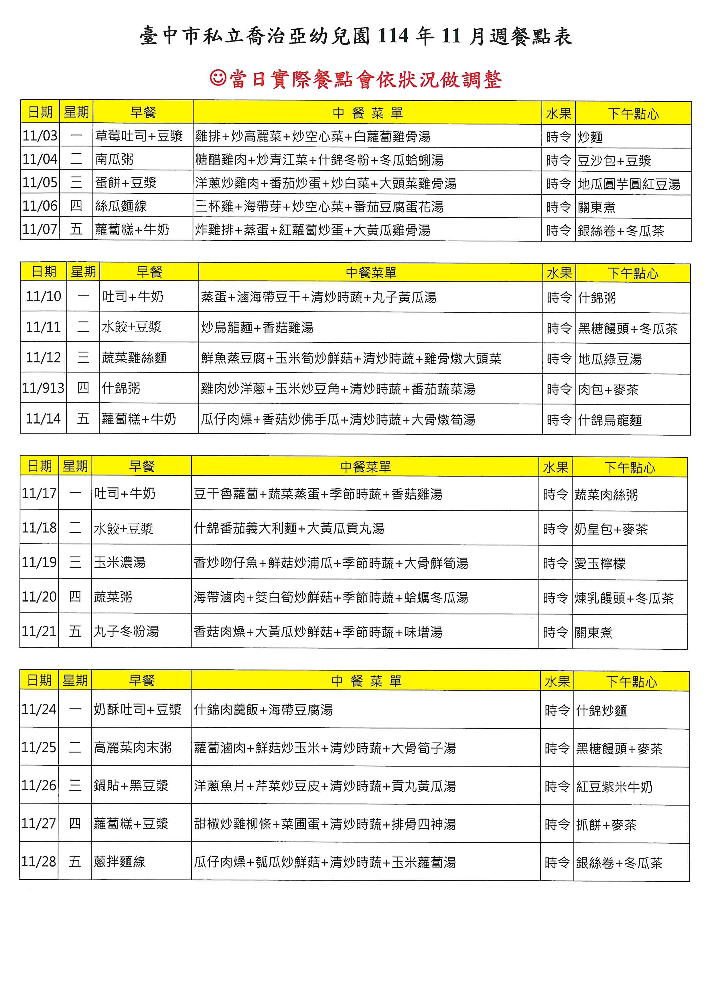 114年11月菜單