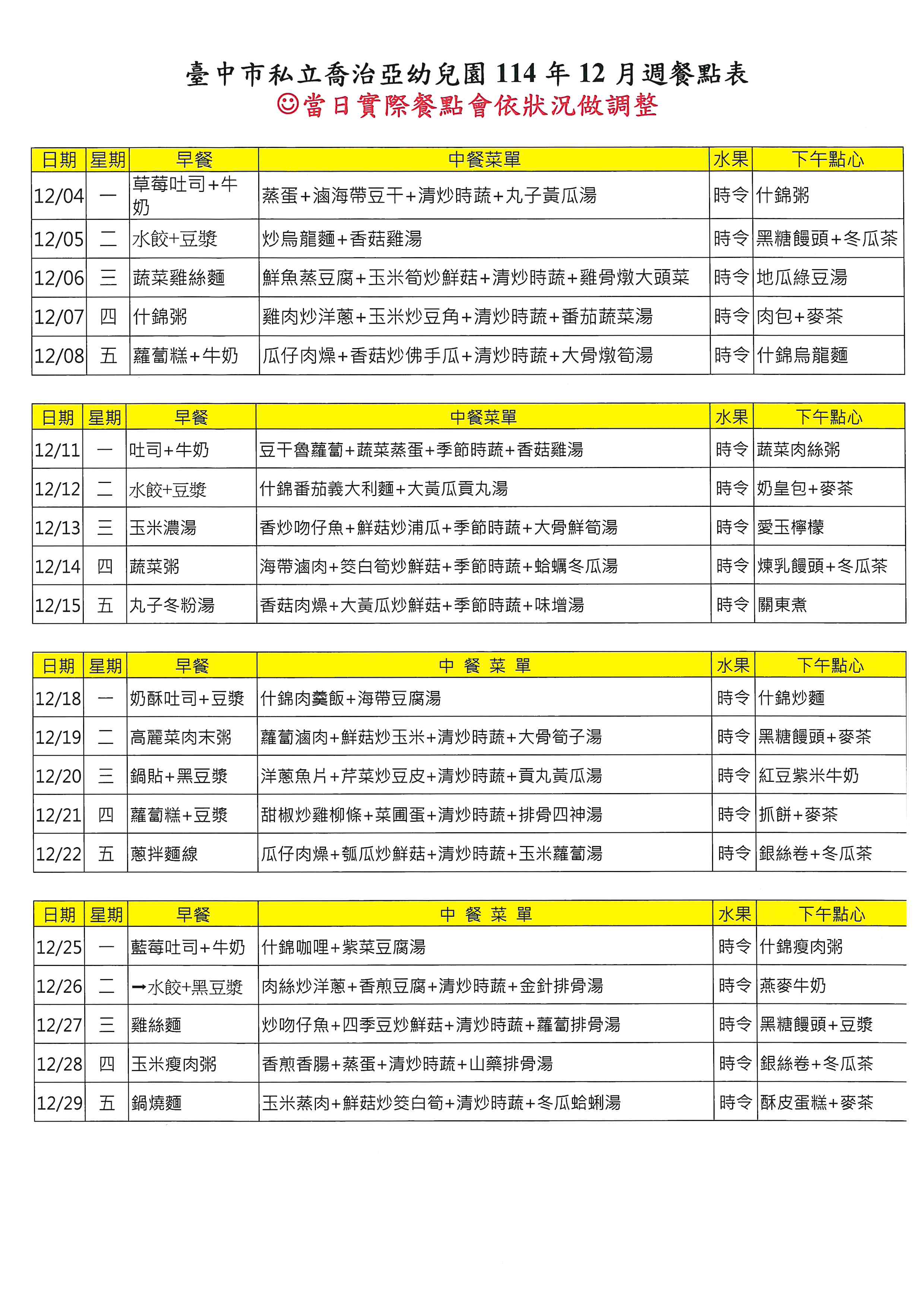 114年12月菜單