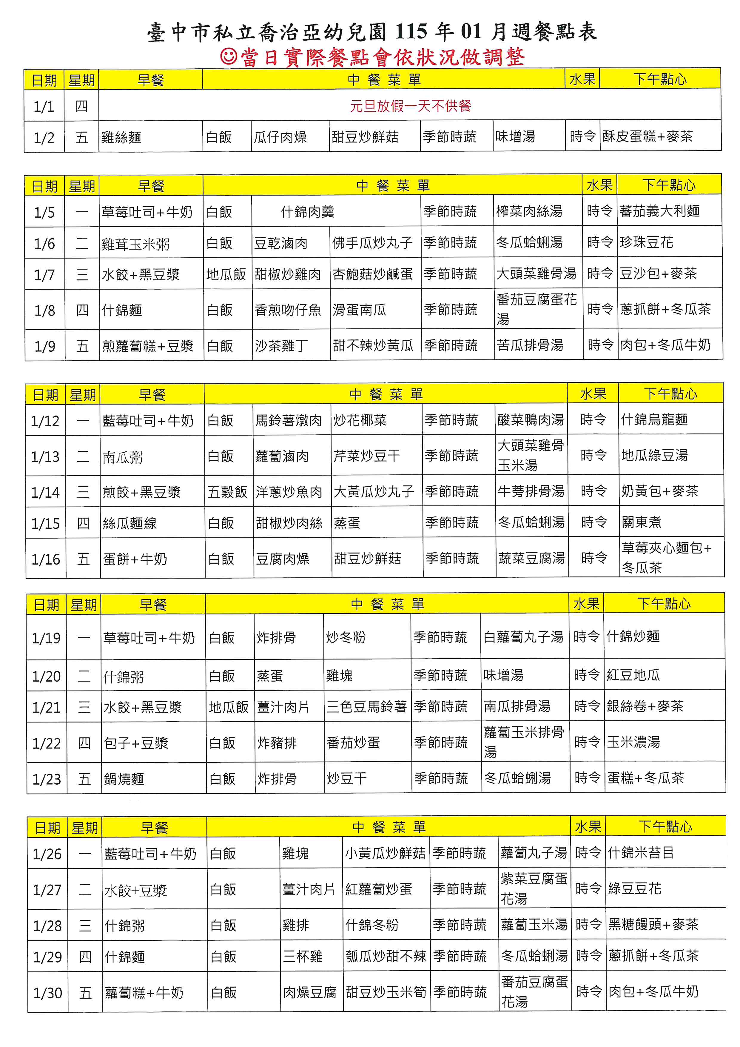 115年01月菜單