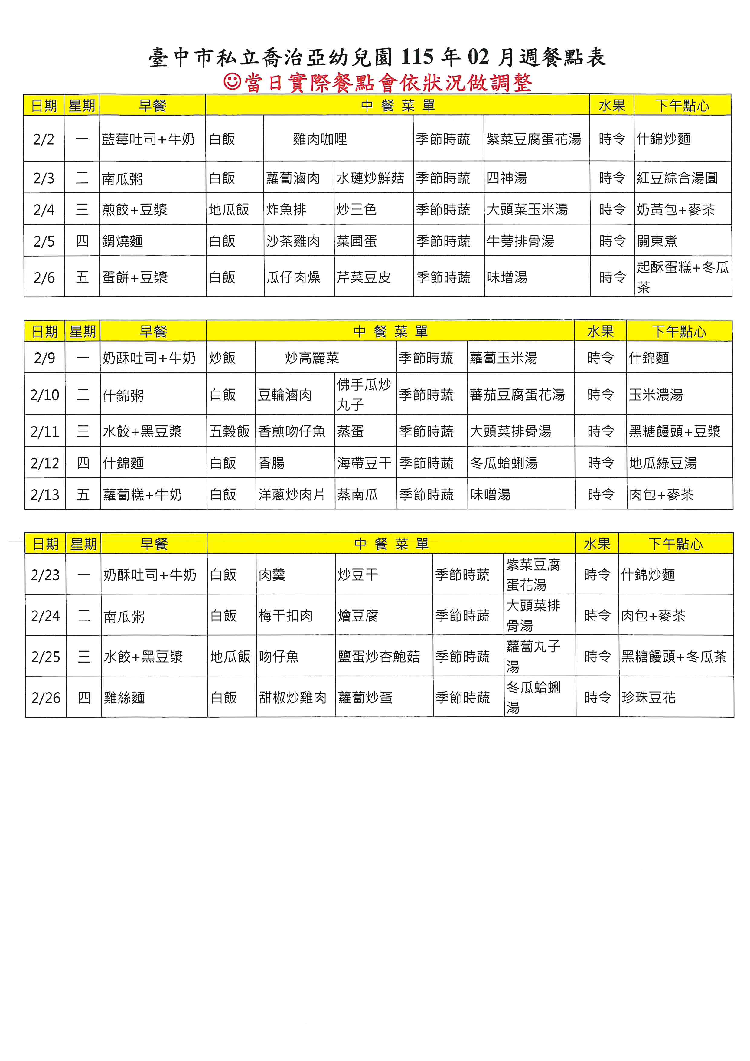 115年02月菜單